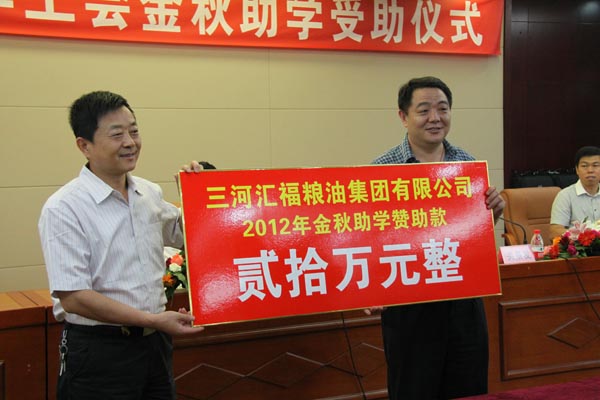 三河汇福粮油集团有限公司向廊坊市2012年工会“金秋助学”捐款20万元