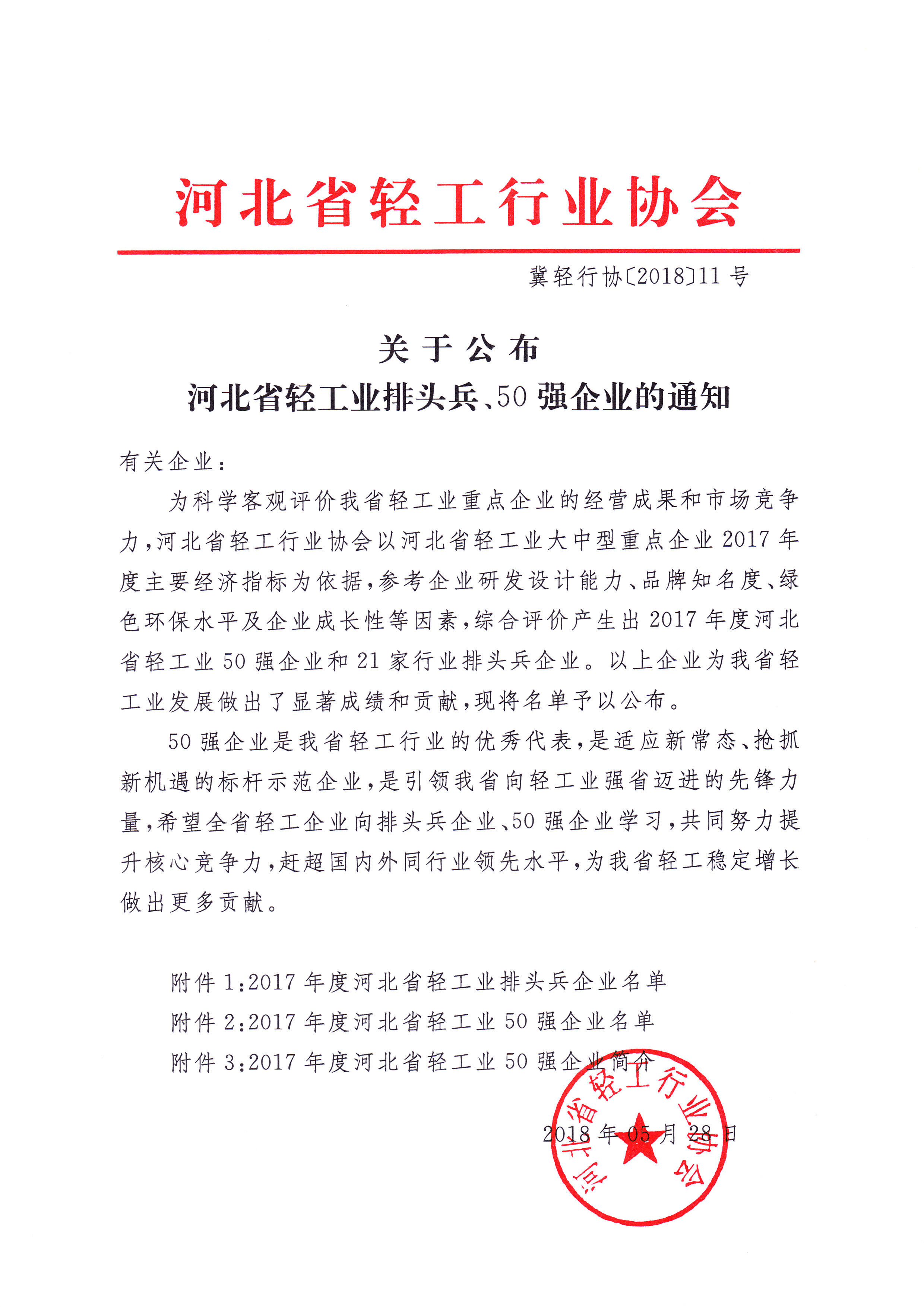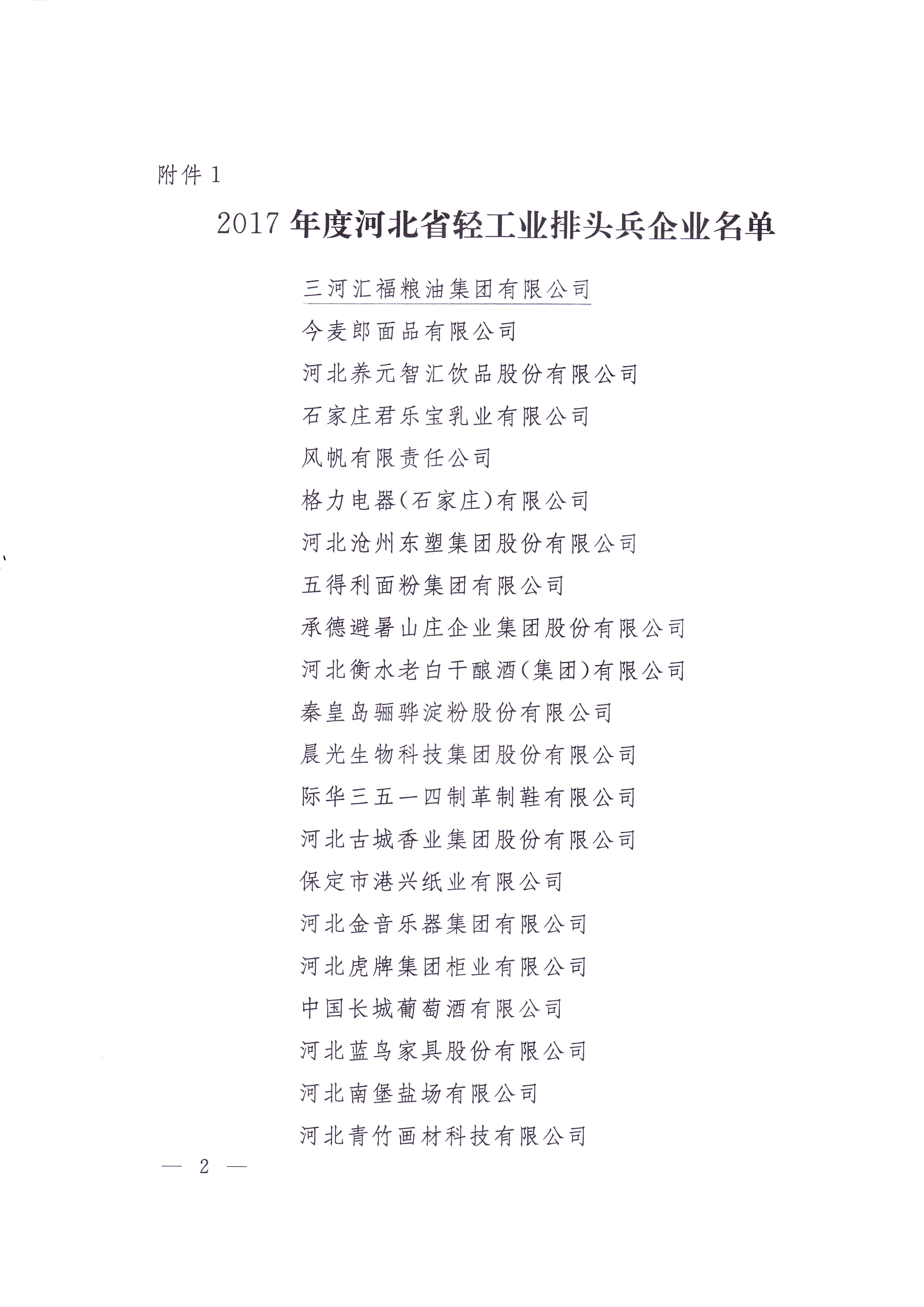 三河汇福粮油集团有限公司被授予“2017年度河北省轻工业排头兵、50强企业”称号